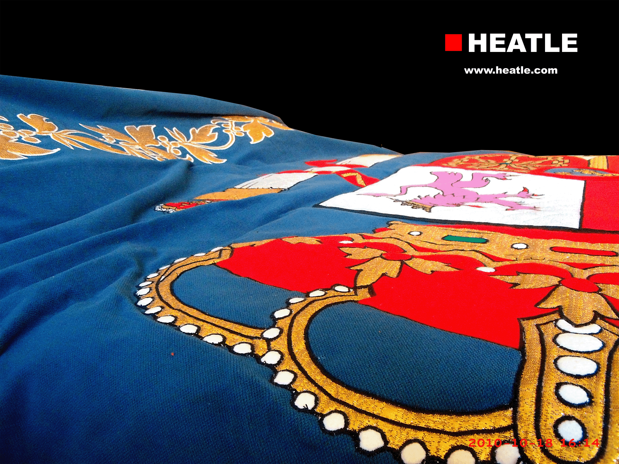 Al timbre, Corona Real cerrada, que es un círculo de oro, engastado de piedras preciosas, compuesta de ocho florones de hojas de acanto, visible cinco, interpoladas de perlas y de cuyas hojas salen sendas diademas sumadas de perlas, que convergen en el mundo de azur o azul, con el semimeridiano y el ecuador en oro, sumado de cruz de oro. La corona forrada de gules o rojo.